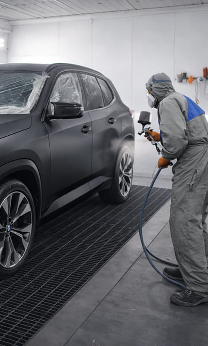 Trabajos de pintura del automóvil realizados siguiendo los patrones del fabricante, con acabados uniformes y duraderos gracias a cabinas profesionales.